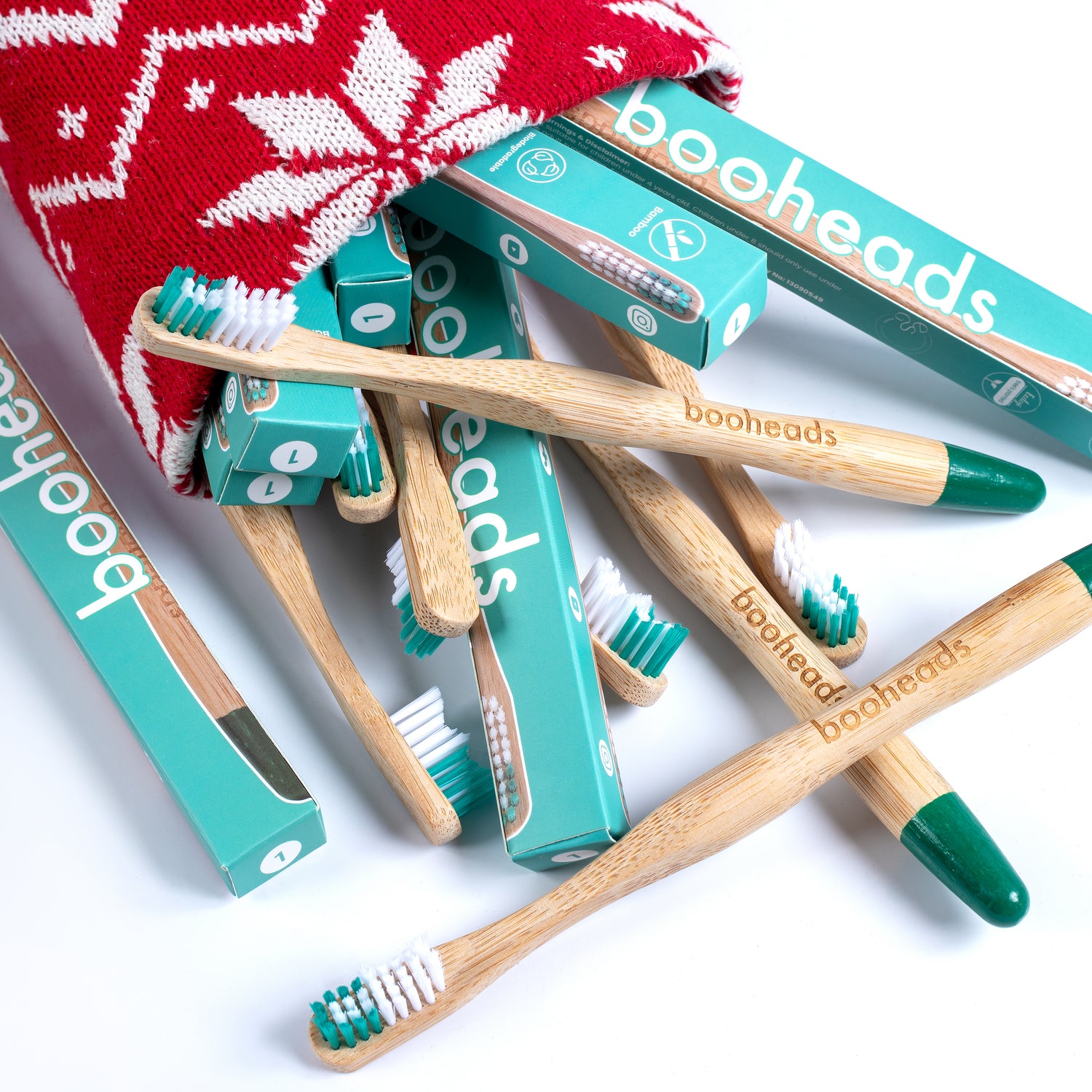 booheads - 1PK - Bamboo Toothbrushe - Green | Biodegradable, bamboo and plant-based